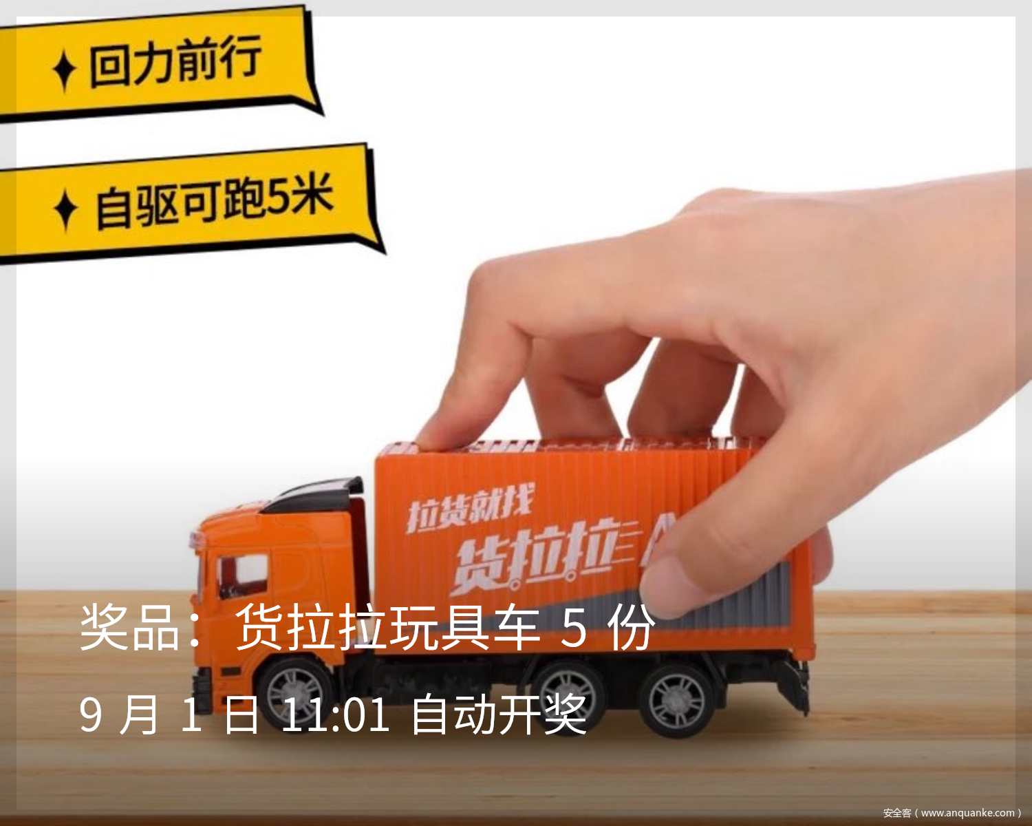 除了挖洞福利,我们还给新人白帽子和非白帽子粉丝准备了5套货拉拉车模用来抽奖,拼运气的时候到了,赶紧搞起来~