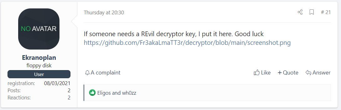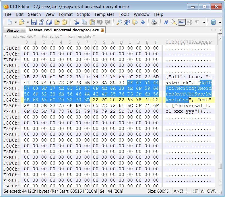 随后不久,Kaseya发出声明,他们从一个“受信任的第三方”收到了对应上次勒索攻击的通用解密器,现在也已经分发给了受到影响的顾客。