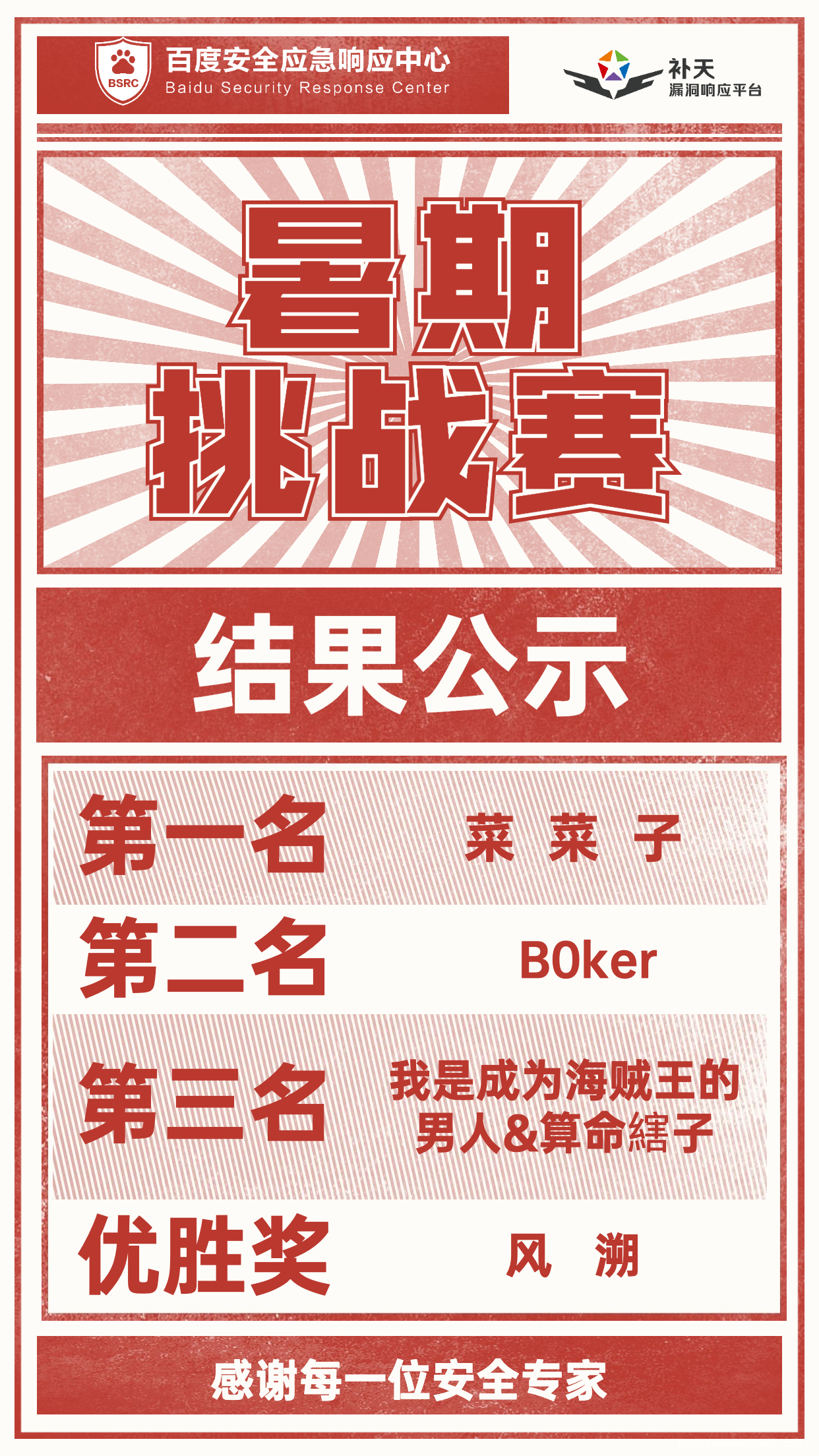 BSRC&补天暑期挑战赛结果公示