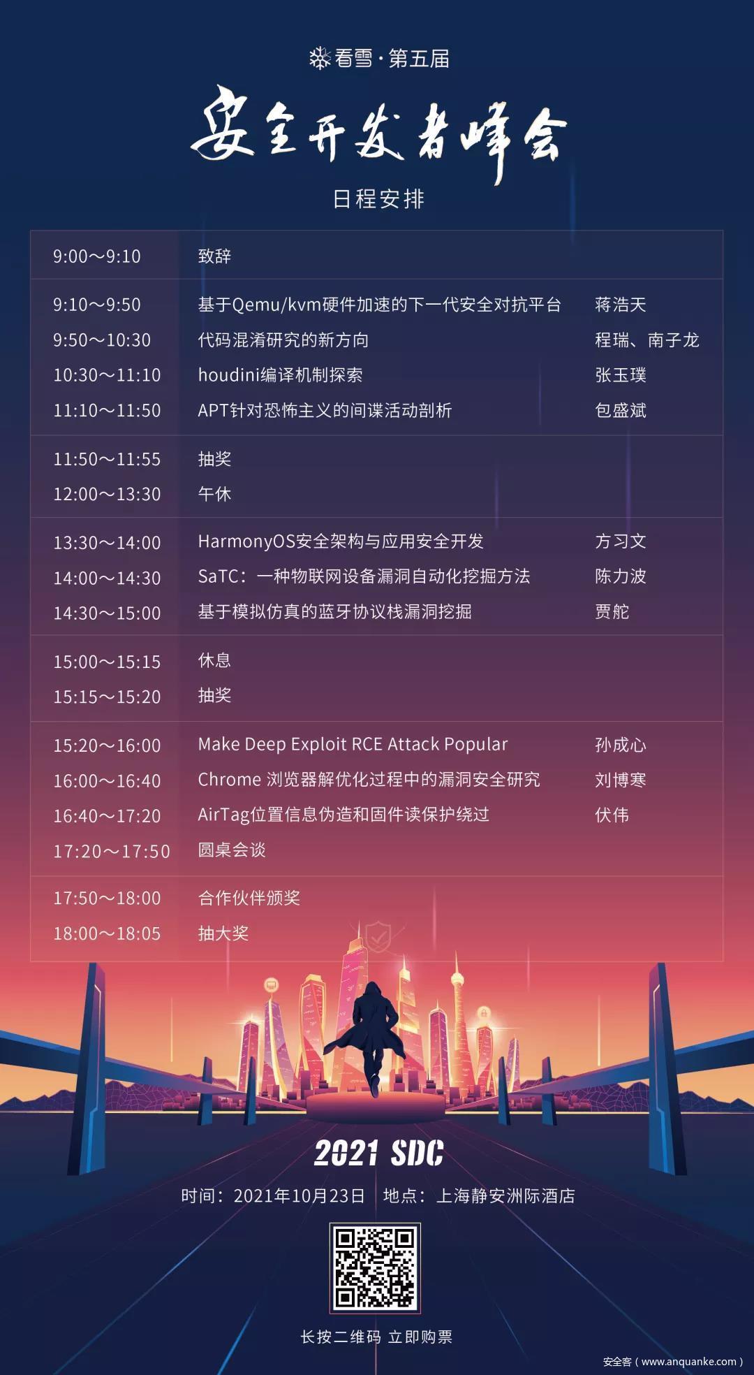 本届看雪安全开发者峰会(SDC)将聚焦数字化升级时代下网络安全的新技术、新发展,以“共筑安全”为主题。