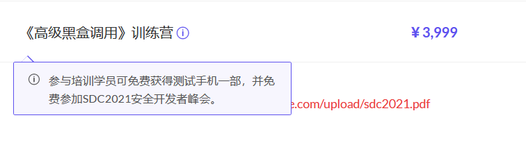 3、学员可免费获得2021安全开发者峰会价值 1024元 门票一张。
