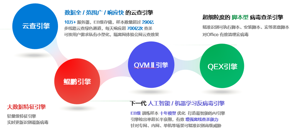 360终端安全管理系统是在360安全大脑极智赋能下,以大数据、云计算、人工智能等新技术为支撑,以可靠服务为保障,集防病毒与终端安全管控于一体的企业级安全产品。通过云–端一体的多维检测框架,在互联网或隔离网场景,能有效遏制各类挖矿木马的感染扩散,保障政企用户内网终端和服务器的安全。