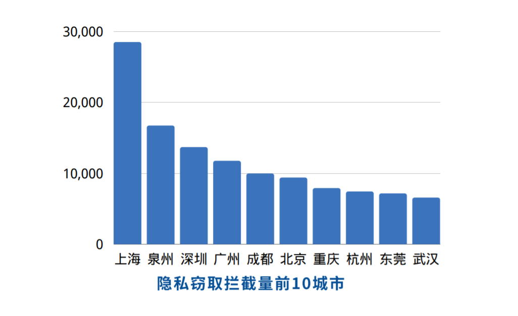 此外,通过对移动安全数据,主要是隐私窃取拦截量的分析发现,上海、泉州、深圳这三个省份移动端隐私窃取数量占据前列,基本上可以体现人口越集中、经济越发达、移动设备使用数量越多的省份,软件恶意行为更加猖獗,恶意软件存活比例越大。