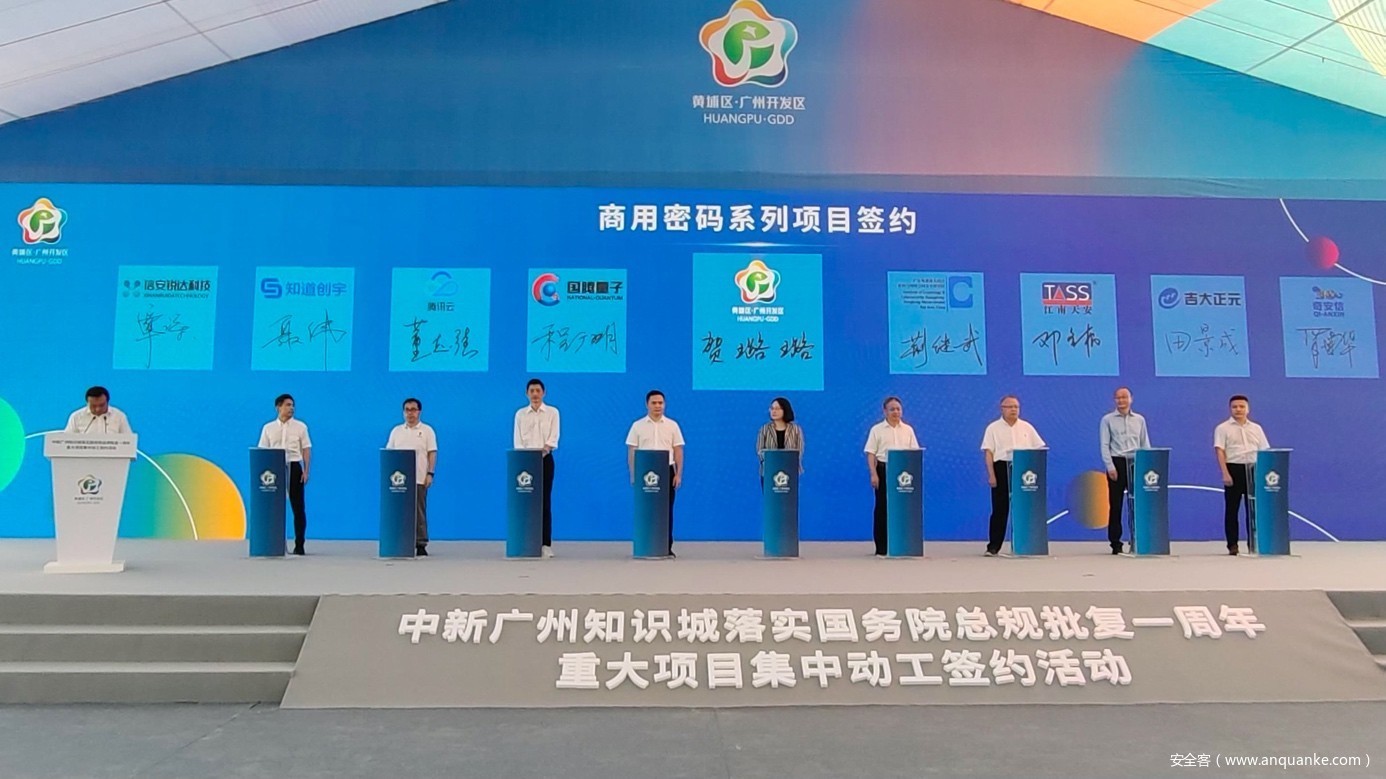 9月8号,由中新广州知识城管理委员会主办的“中新广州知识城落实国务院总规批复一周年重大项目集中动工签约活动”在广州市黄埔区举行,会上进行了商用密码系列项目签约仪式,腾讯云鼎实验室作为主要参与单位出席活动并参与签约。这次签约是黄埔区揭牌“广东省密码应用和创新示范基地”以来的又一重大进展。