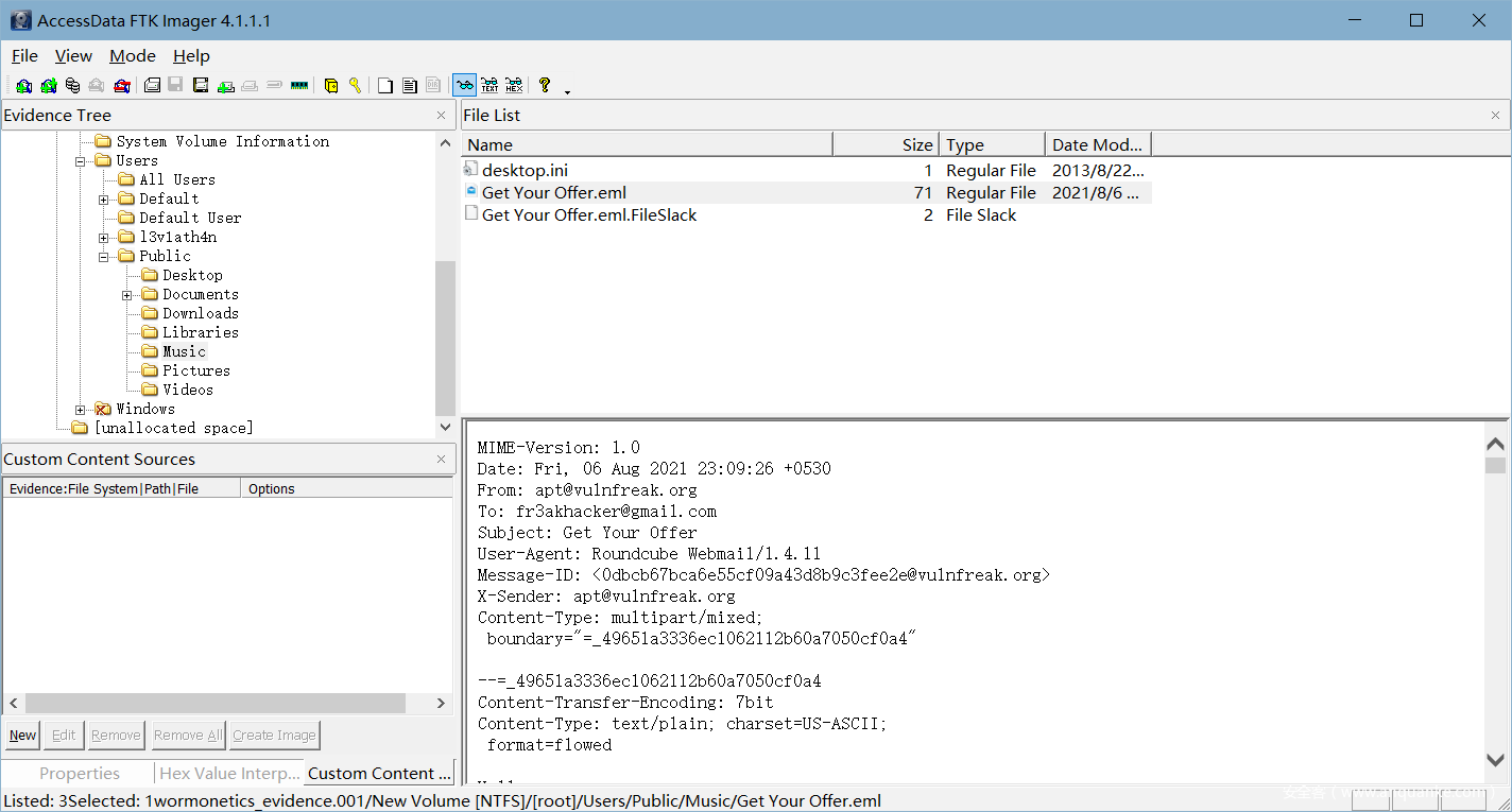 通过ftk Imager 寻找eml,找一些常见的路径,在Get Your Offer.eml,常见的钓鱼邮件名。