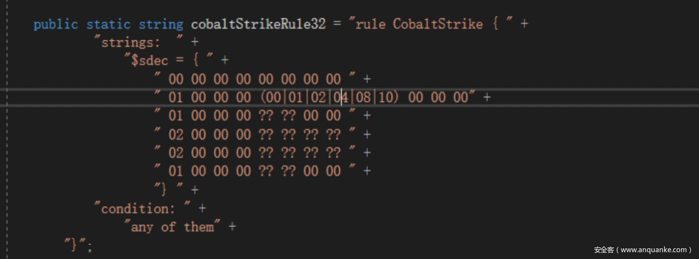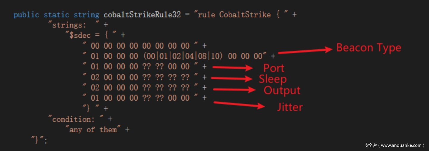 ??代表通配符,实际匹配的就是beacon.dll当中真正的config结构体,到这一步,后面的结构体还原就是顺水推舟了