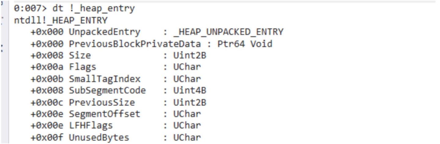 而在实际的进程当中,堆块对应的结构体是_HEAP_ENTRY
