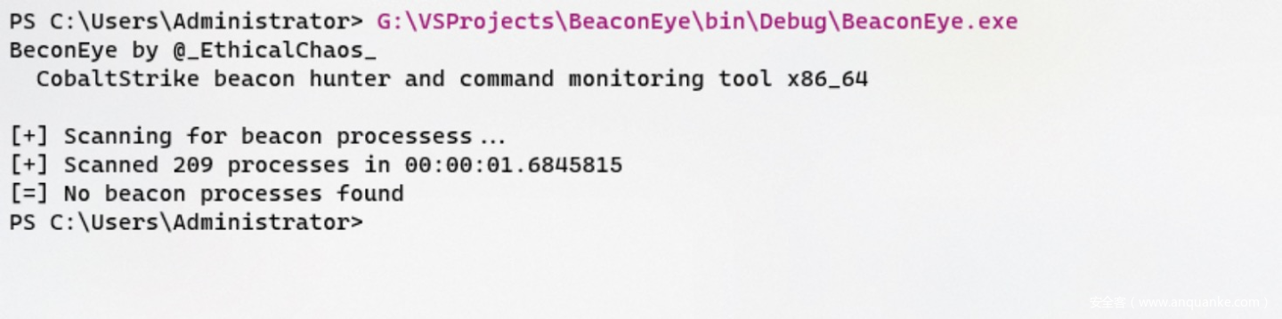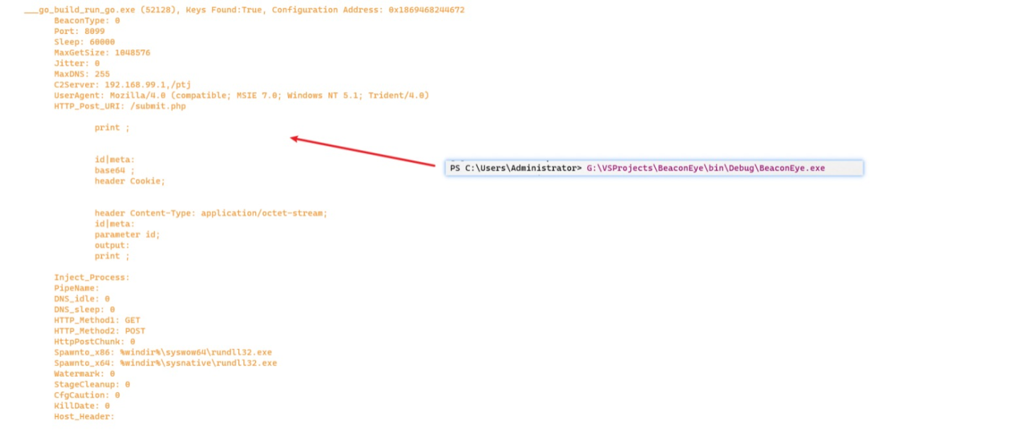 近日有安全人员开源了一款检测Cobalt Strike Beacon的工具,名字叫BeaconEye,他的核心原理是通过扫描Cobalt Strike中的内存特征,并进行Beacon Config扫描解析出对应的Beacon信息,项目地址是https://github.com/CCob/BeaconEye。