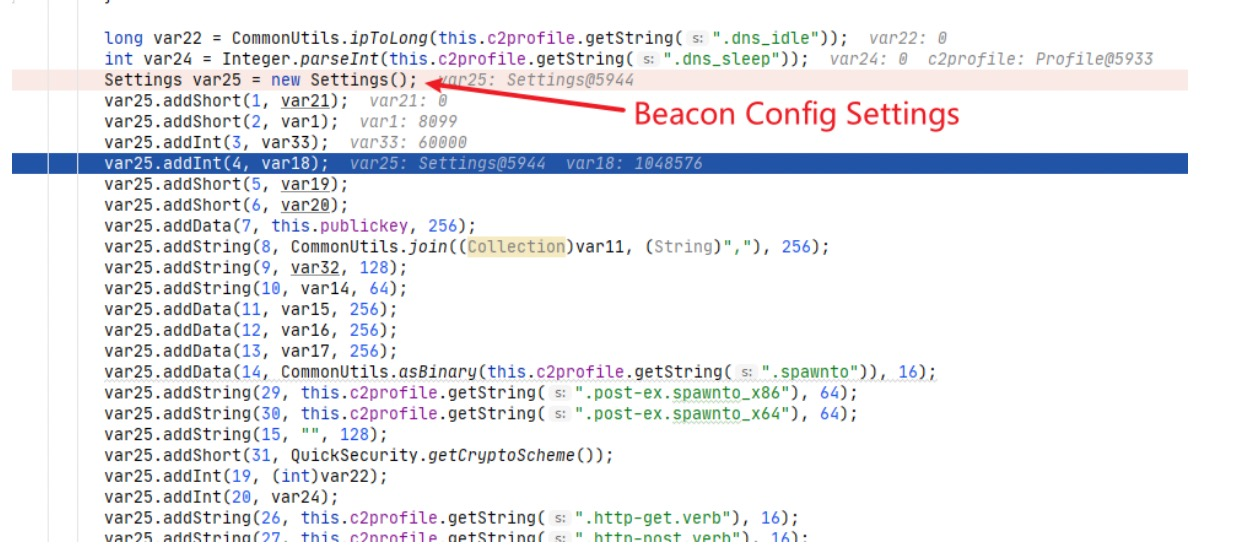 这上面指向的Settings结构体就是Beacon Config,比如var1,它代表实际通信的端口