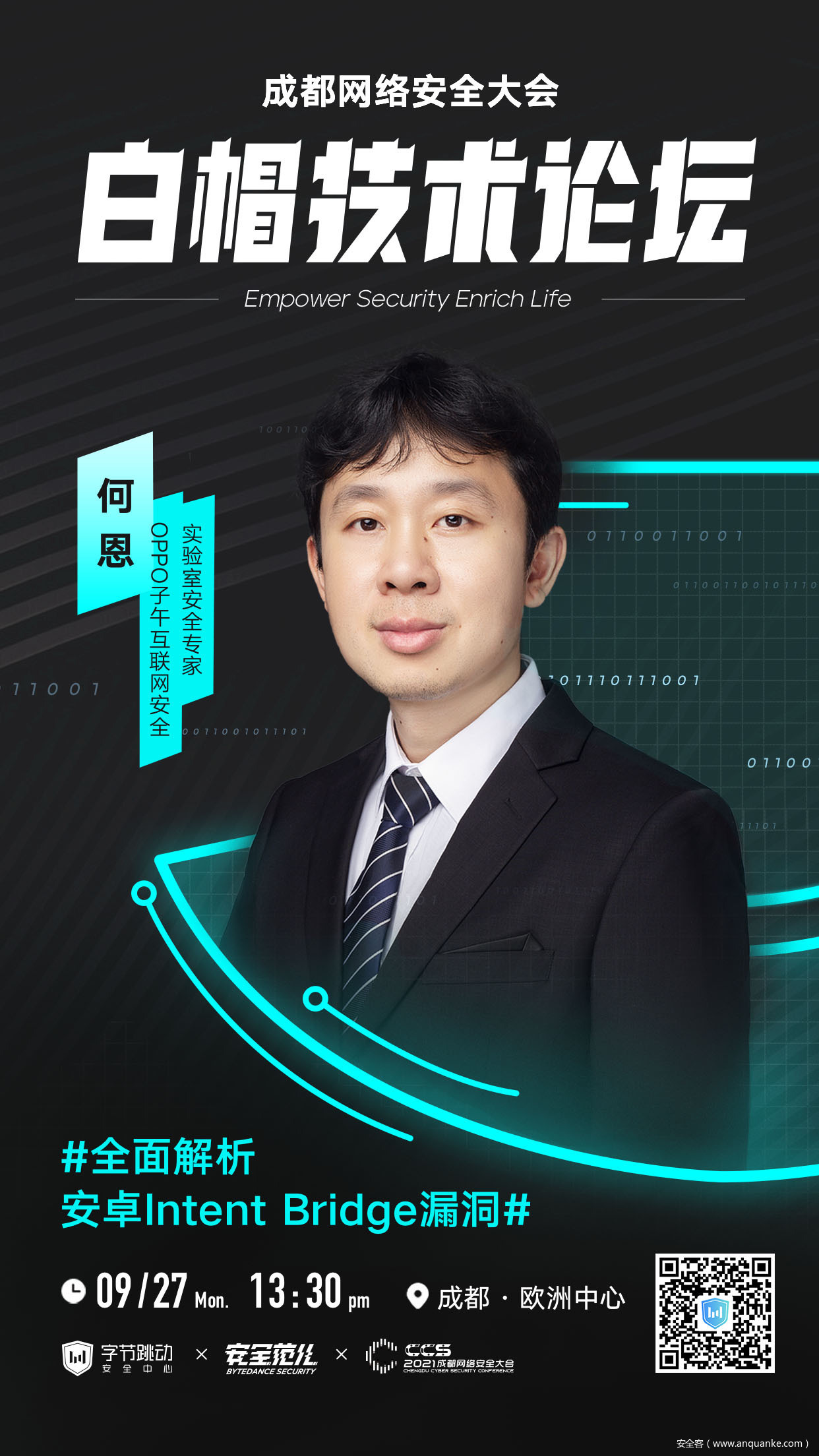 议题简介:作为最有安卓特色的漏洞类型,Intent Bridge历史悠久,屡见不鲜,危害极大。本议题将由浅入深,面向攻防双方,通过流行APP和安卓系统中的丰富案例,全面解析Intent Bridge漏洞的基本类型、利用方法和缓解建议。