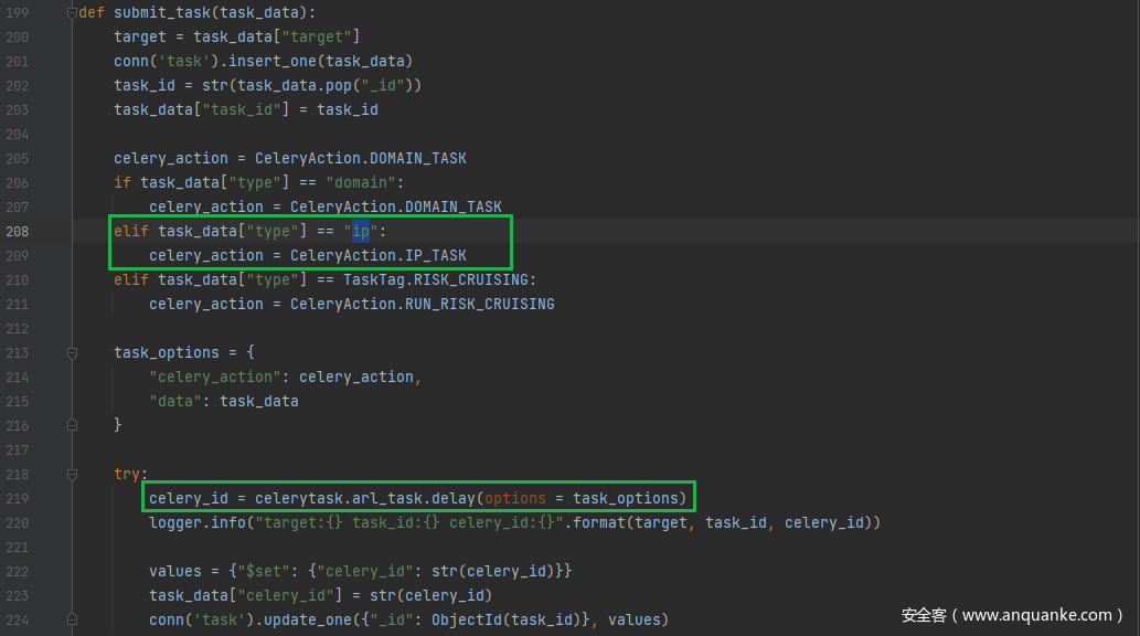 把任务数据发送给app/tasks/ip.py文件处理