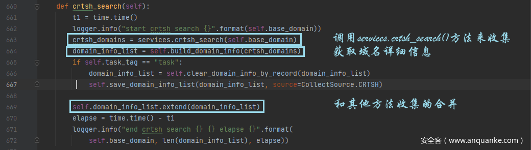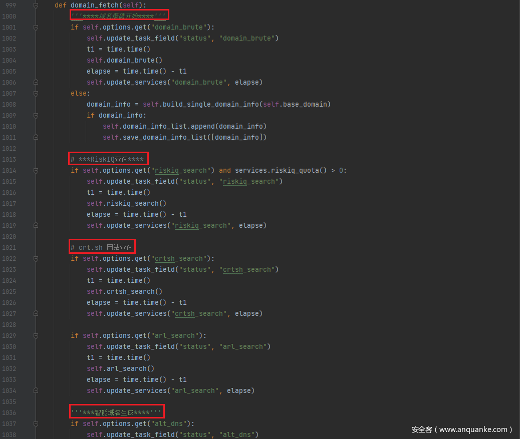 在接下来分析之前,需要明确一点,OneForAll的域名收集能力是比ARL强的。也并不是说ARL域名收集模块可以直接砍掉,通过分析,OneForAll只进行了域名收集,然后直接入库。ARL还进一步对收集到的域名进行了各种处理。