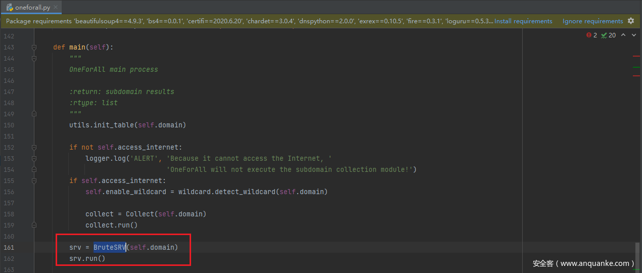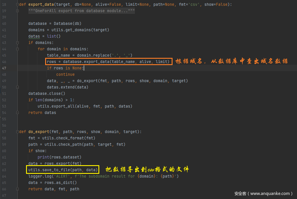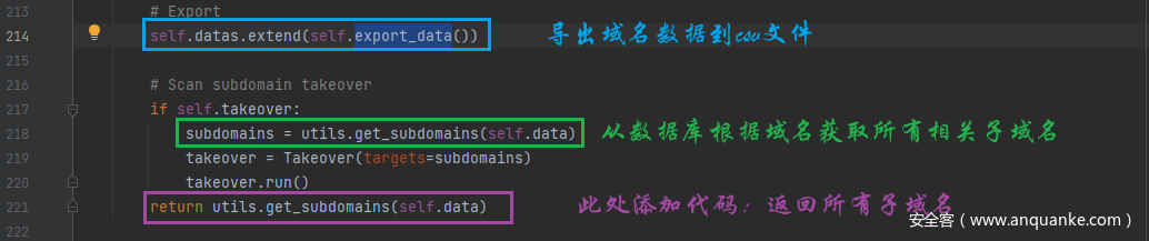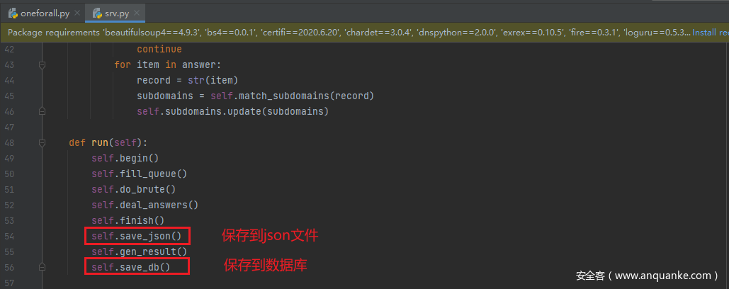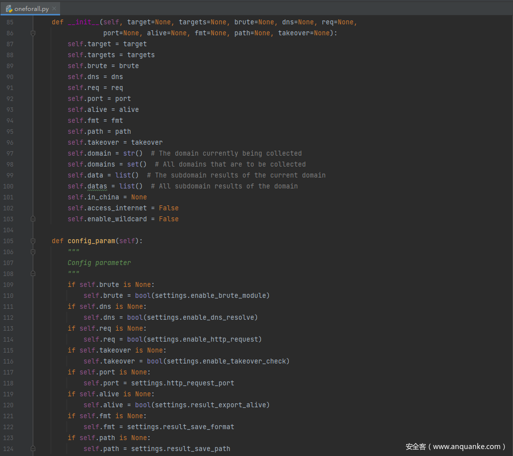 我们知道,收集子域名有很多方法。一般会每种方法都写成类,然后一个个调用。OneForAll的启动文件是oneforall.py,直接打开这个文件,随便找到一种收集方法,一步步找到保存方式。