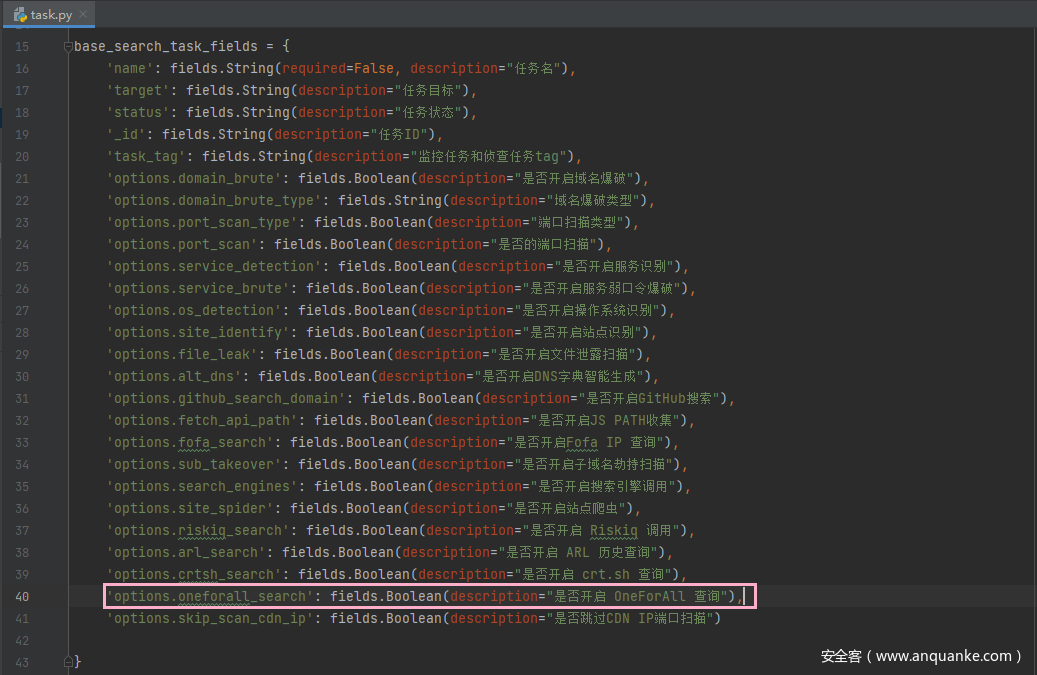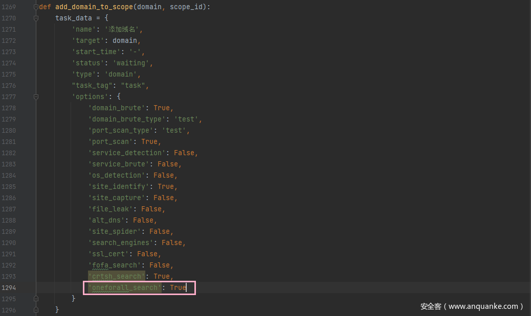 先说一下大概思路,针对域名收集,主要就是把oneforall给集成到ARL中。如果都预留了接口,当然就不用写一篇文章了,显示情况并非如此。