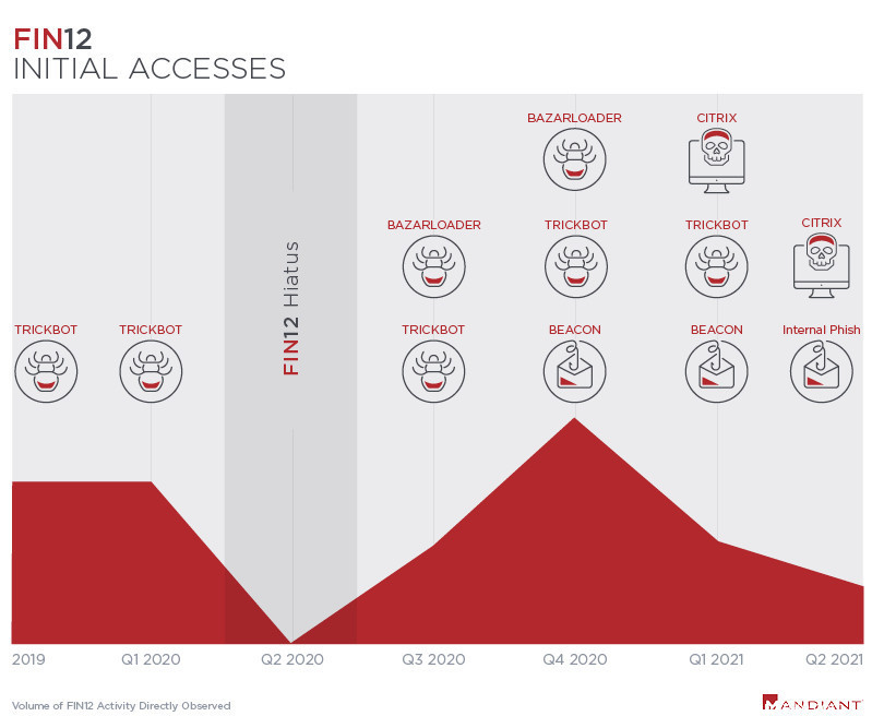 Mandiant的研究人员透露称,自2020年9月以来,他们近20%的事件响应活动是针对FIN12入侵行为的。