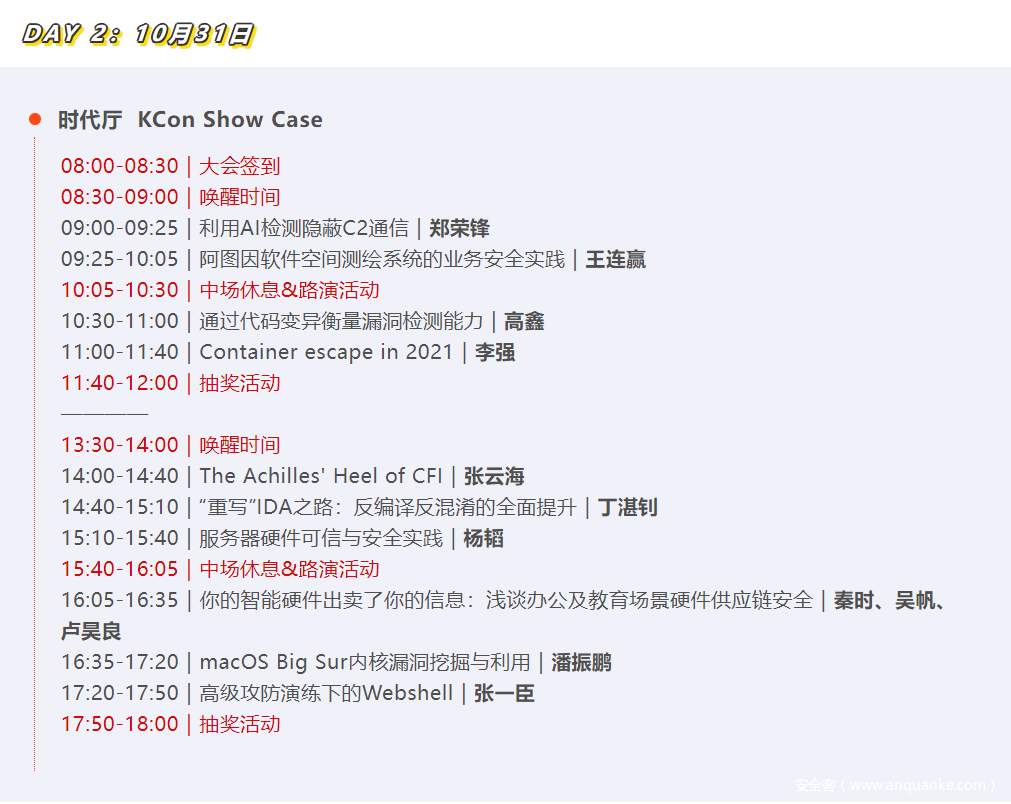 以上就是Kcon 2021黑客大会的精彩内容回顾。十年光景,砥砺前行,接下来,让我们一起盘点一下本次大会的精彩亮点吧!