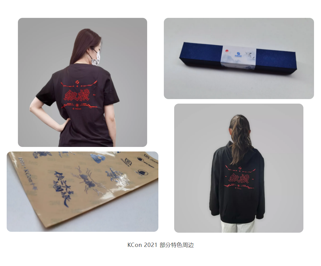 另外,黑客装备市集汇聚了一众 KCon 十周年特色周边,我们崭新的IP形象周边也在展示区与大家相聚2021!