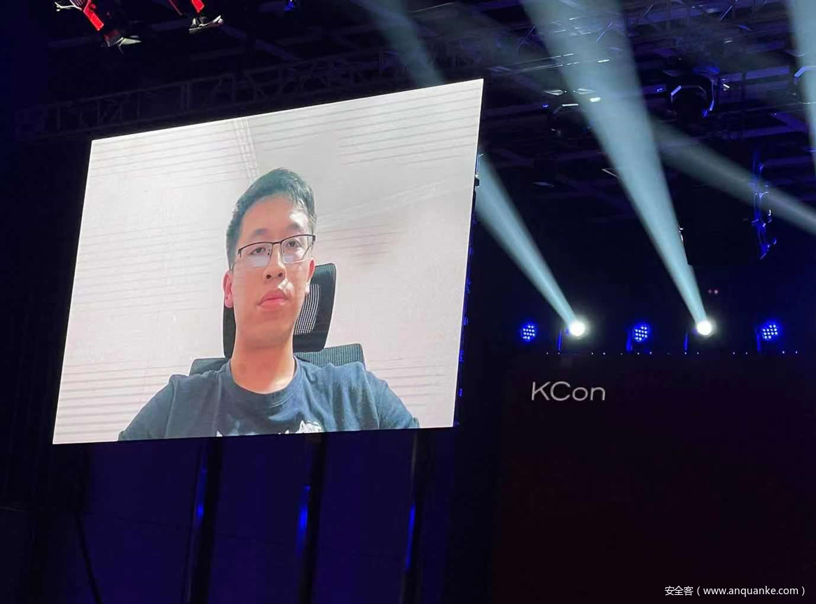 由于疫情原因,演讲者未能亲临现场,但他在会议上通过大屏幕以视频的形式与在做的安全研究人员们进行了隔空交流。