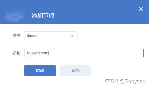 我按照 Goby 之前发的演示视频,添加一个值为 huawei.com 的 domain 节点。