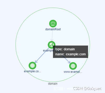 开始看到 domain 和 subdomain 有些疑惑,这两个有什么区别呢。问了 Goby 团队,才知道 domain 节点是一个概念节点,用于汇集子域名。