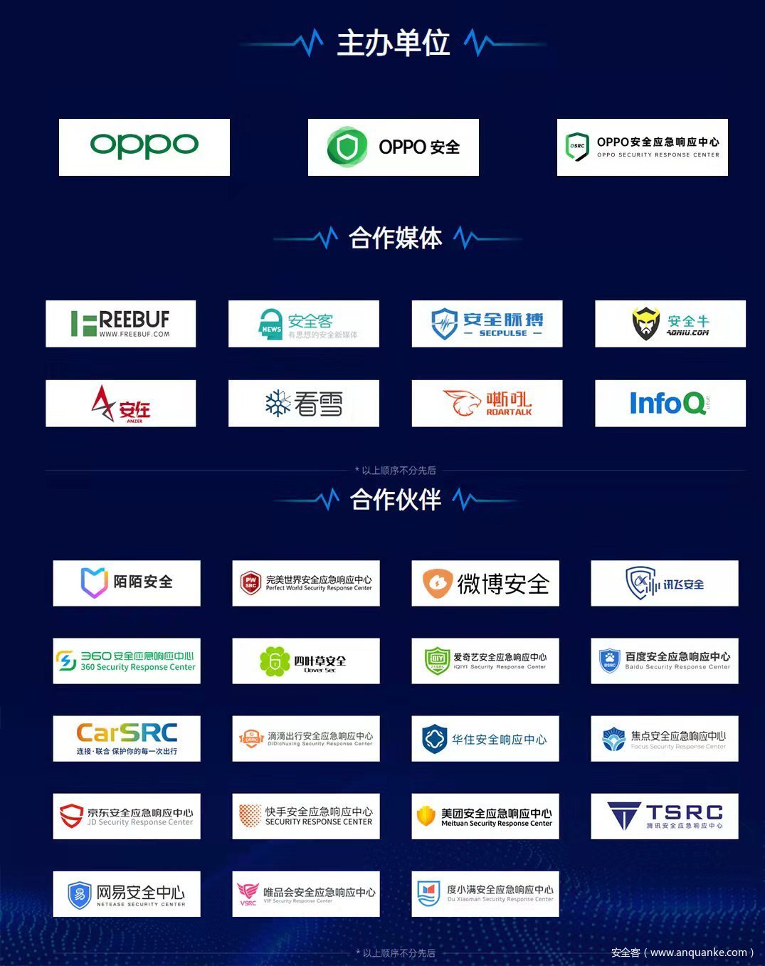包括HackerOne、Intel、Kryptowire、Synopsys、umlaut communications GmbH、艾特赛克(北京)信息技术有限公司、百度安全、北京微步在线科技有限公司、德勤企业咨询(上海)有限公司北京分公司、奇安信科技集团股份有限公司、上海挪华威认证有限公司、深圳市网安计算机安全检测技术有限公司、腾讯科恩安全实验室、腾讯玄武安全实验室、微软(中国)有限公司、武汉安天信息技术有限责任公司、浙江大学智能系统安全实验室共17家优秀合作伙伴现场参会,共同携手,为用户打造一个更加安全的互联网生态环境。