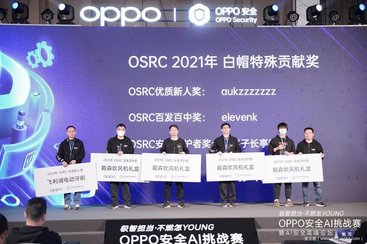 在构建OPPO自身安全生态体系方面。OPPO安全应急响应中心(OPPO SECURITY RESPONSE CENTER即OSRC)作为OPPO安全生态体系建设中的关键一环,是OPPO面向全社会收集并响应安全漏洞与情报的平台,同时也承担着OPPO与安全业界同仁合作、交流的重任,持续致力于保障OPPO亿级用户及多元化业务和产品的安全与隐私。自2018年成立以来,OSRC已吸引来自全球59个国家的、超过2500位安全研究者加入,他们为OPPO的全球安全防护体系的建设与维护做出了杰出贡献。2021年OPPO安全挑战赛现场,同时也举办了OSRC年度颁奖,年度优秀合作伙伴及核心安全研究者共襄盛举,携手共建OPPO安全生态。