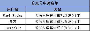 获奖方式3:参与微信公众号文末评论活动(留言内容同方式一),抽3名用户赠送《深入理解计算机系统》!