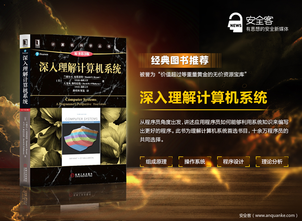 获奖方式2:关注安全客官方微博,在下方微博关注、转发、点赞、并留言(留言内容同方式一),我们会随机抽取2名用户,赠送《深入理解计算机系统》 !