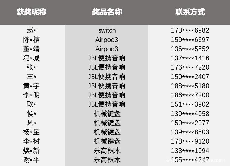 1. 参与本次活动的小伙伴可下载查看中奖名单,核实自己是否中奖;