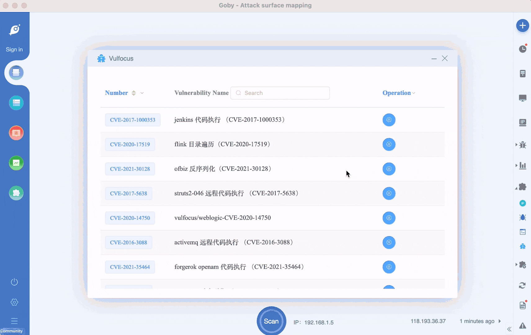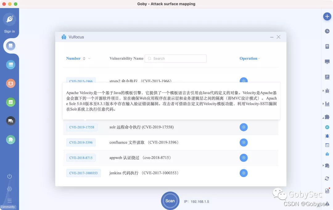 前言: 作为安全小白的插件作者,曾经最困惑的就是,拿着自带强大靶标漏洞库的 Goby 去扫描,却总是很难找到漏洞的影子,这让起步去学习安全知识这件事变得困难,后来了解到靶场工具,开始使用 Vulfocus,一个想法随之产生:将 Vulfocus 通过插件的方式集成到 Goby,更方便快捷的一键启动漏洞环境一键扫描漏洞。于是现在的这款插件应运而生~