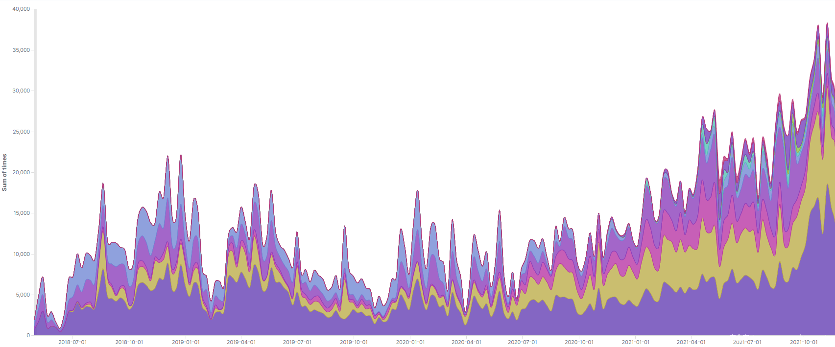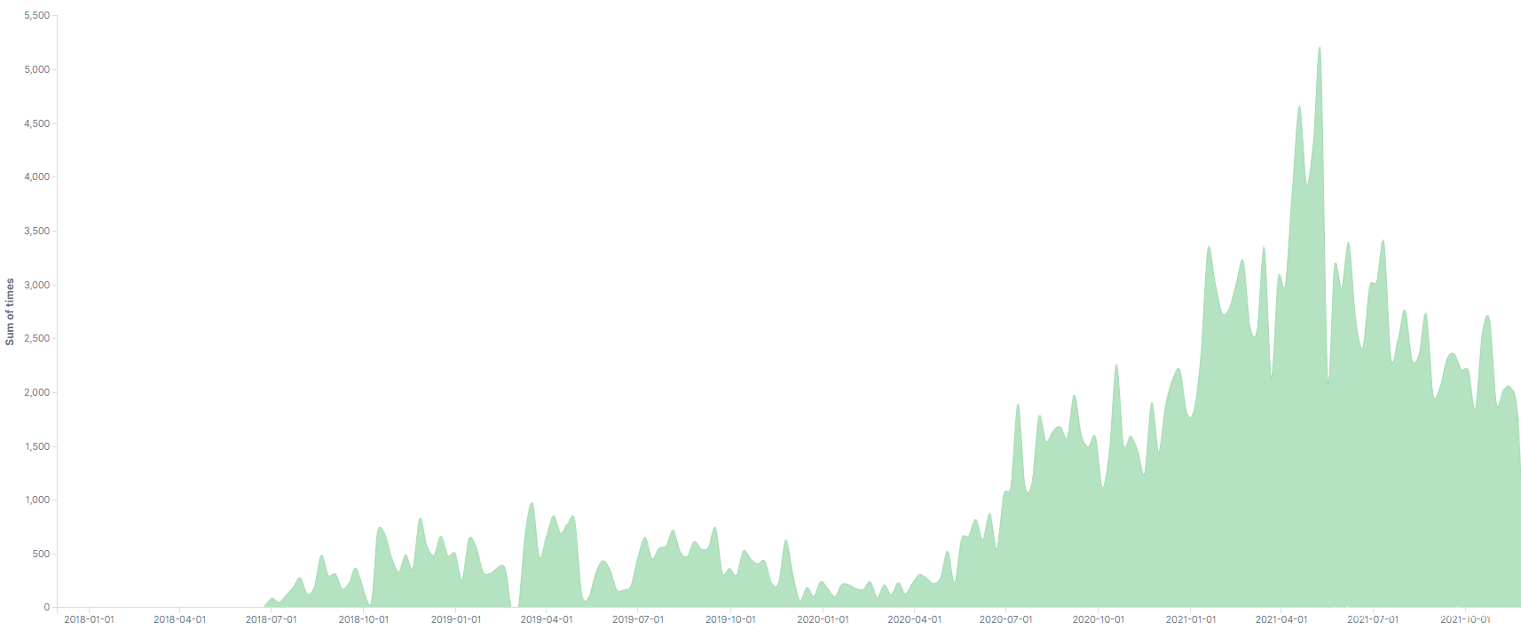 过去十几年360政企安全集团持续针对各类木马进行长期追踪,尤其是在针对挖矿木马的检测拦截、溯源反制上积累了大量实战经验。其中,360政企安全集团高级威胁研究分析中心从2018年便开始了针对典型挖矿木马——JavaXminer家族的持续追踪。该家族多使用Web服务类漏洞对OA系统、Web服务器等进行攻击,更新迅速且频繁。同时,该家族具备Windows、Linux双平台的攻击能力,导致其攻击量在2020年至2021年有大幅度增加。
