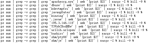 暴露于公网且存在漏洞的服务器很容易被各种木马给盯上,对于挖矿木马来说,在这种机器上常常会碰见自己的“同行”。为了最大程度地占据系统资源挖取货币,对“竞品”的清理工作在所难免,——在这一点上JavaXminer也不例外。