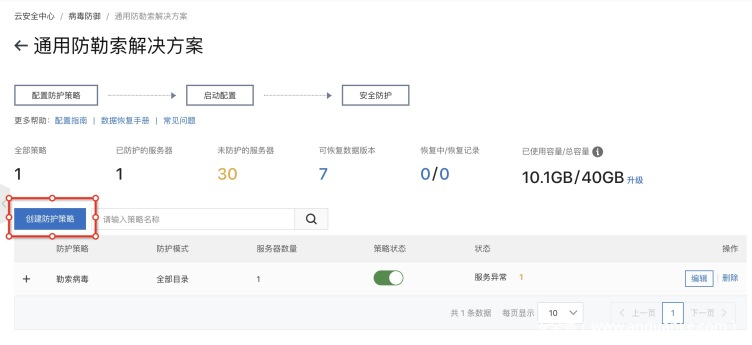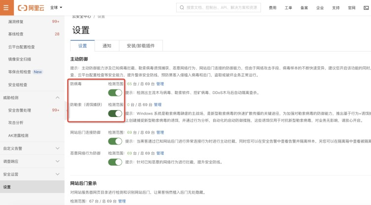 阿里云云安全中心用户只需要在控制台 主动防御 – 防勒索 中,开通“防勒索”功能: