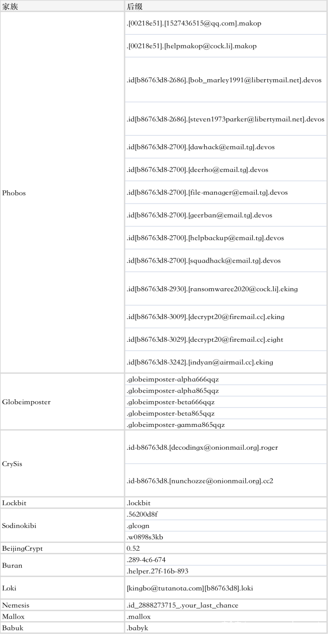 勒索家族后缀信息披露