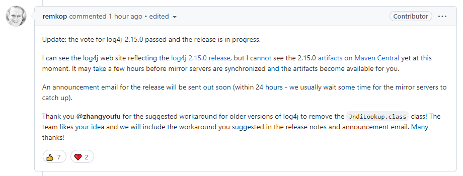 https://github.com/apache/logging-log4j2/releases/tag/log4j-2.15.0-rc2