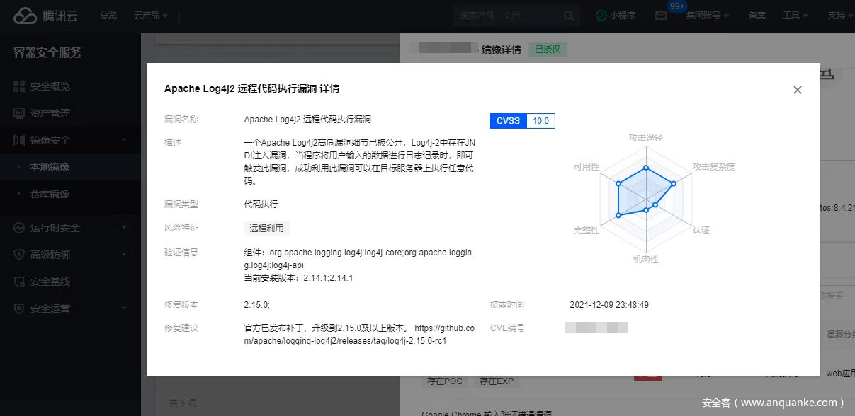 2、腾讯T-Sec主机安全(云镜)、腾讯容器安全服务(TCSS)已支持检测企业资产(主机、容器及镜像)是否存在Apache Log4j2远程代码执行漏洞。