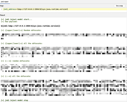 下图是一款专门用于混淆Log4j2利用的工具对Payload进行混淆后的结果,可以看到混淆后的结果是极具欺骗性的: