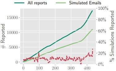 前文中,有提到研究人员在参与者电子邮件上配备了一个“报告网络钓鱼”的按钮。在测试期间,90%的员工报告了6封或更少的可疑电子邮件,用户报告网络钓鱼的准确率为68%,垃圾邮件的准确率为79%,而最多产的报告者的准确率超过80%。比例如此之高的数据,也说明在网络钓鱼攻击面前个体是可以发挥一定效果。