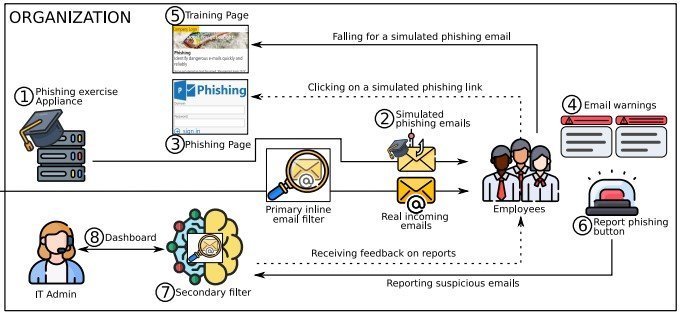 苏黎世联邦理工学院与第三方公司合作进行了一项为期15个月的大规模网络钓鱼调查研究。期间以14733名参与者为样本,通过常规工作电子邮箱发送模拟的网络钓鱼电子邮件,部署电子邮件客户端按钮的方式,测试参与者对可疑电子邮件的识别能力。