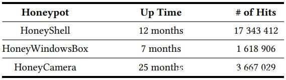 “只有 314 112 (13 %) 个独特的会话被检测到,蜜罐内至少有一个成功的命令执行,”研究论文解释道。