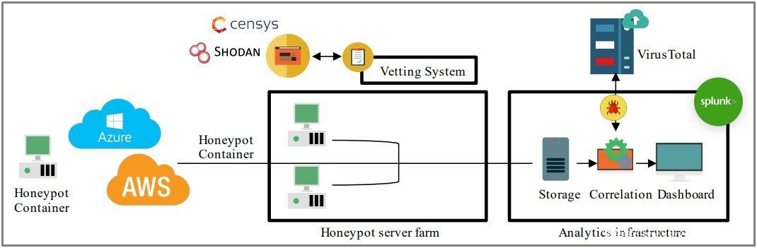 为了创建一个多样化的生态系统,研究人员安装了 Cowrie、Dionaea、KFSensor 和 HoneyCamera,它们是现成的物联网蜜罐模拟器。