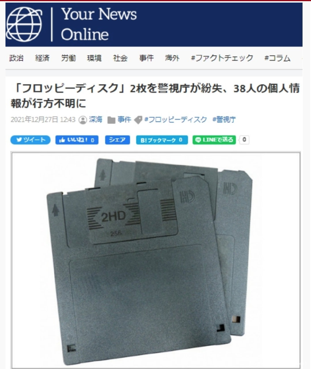 东京警方意外丢失珍贵软盘,里面还存有公民个人信息。