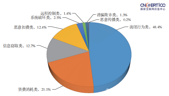 2020年移动互联网恶意程序数量占比按行为属性统计