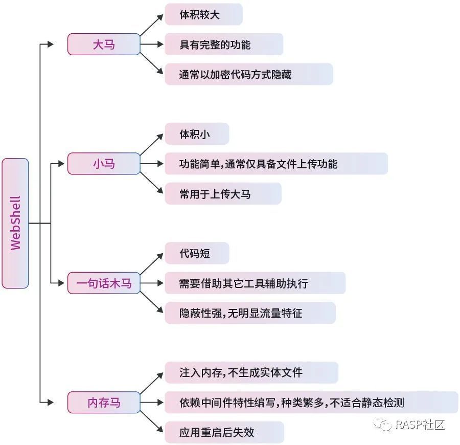 WebShell 是一种通过浏览器来进行交互的Shell,而且是黑客通常使用的一种恶意脚本,通常被攻击者用来获取对应用服务器的某些操作权限。攻击者通过渗透系统或网络,然后安装 WebShell ,攻击者可以在应用服务器上执行敏感命令、窃取数据、植入病毒,危害极大。而且, WebShell 隐蔽性极强,传统的流量侧方案对其防御效果不佳。本文将为大家介绍一下常见的 WebShell 类型以及 RASP 如何对其进行防御。