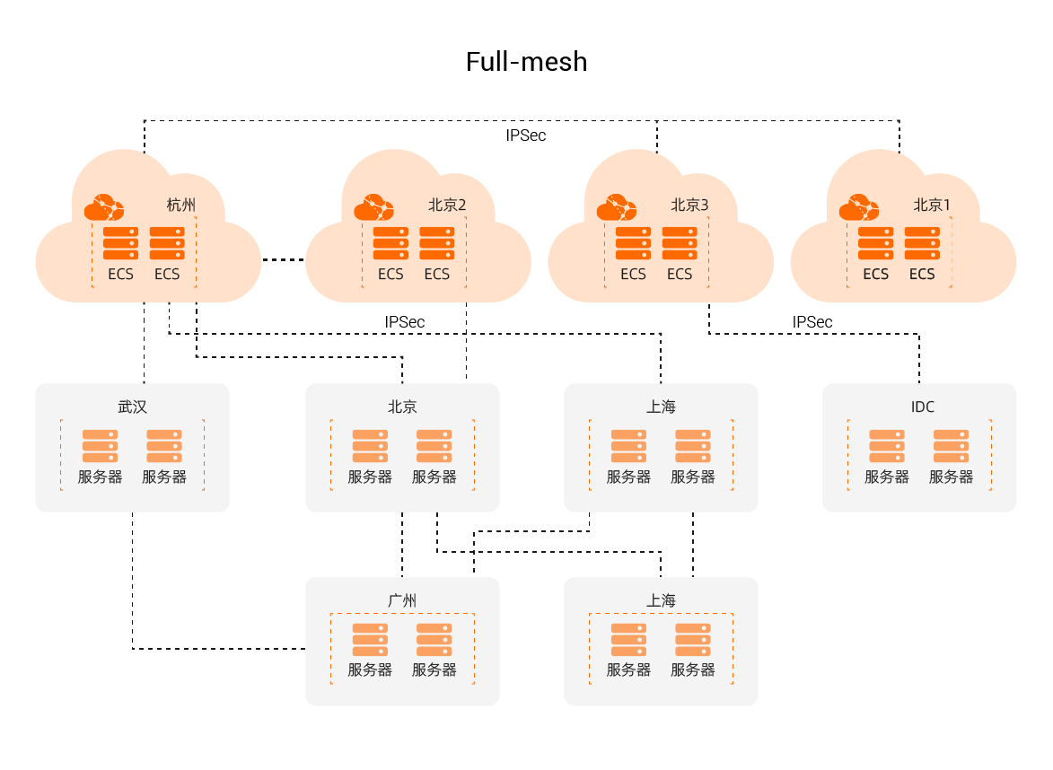 游戏公司业务发展的非常快,我们在全球各地都有IDC机房、办公区,在不同的地域还使用着不同的云,云上有各类的SaaS化软件,疫情来临之后,全民居家办公,我们还要处理员工们“千奇百怪”的设备接入……更重要的是,这些端口之间存在复杂的互访关系,形成了我们称为的“Full-Mesh”的结构,全部通过IPSec进行连接,网段冲突成为家常便饭,VPN一下就撑不住了。