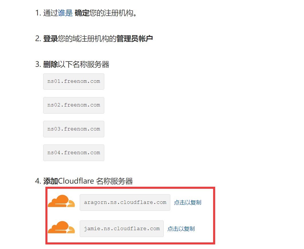 4、复制Cloudflare名称服务器地址。