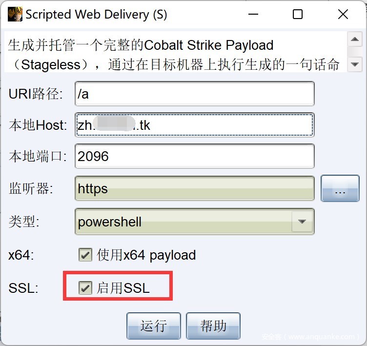 11、 生成一个Stageless Payload,勾选启用https。