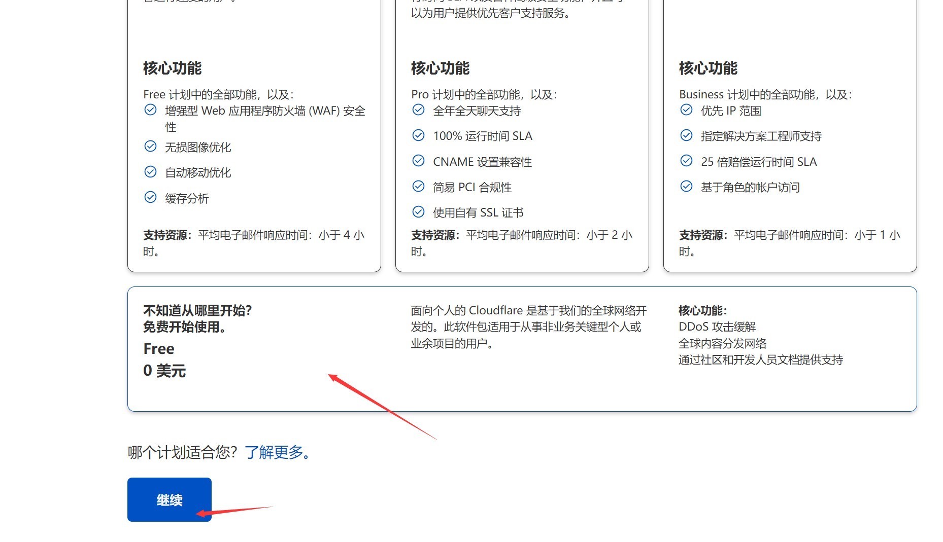 2、选择免费计划。